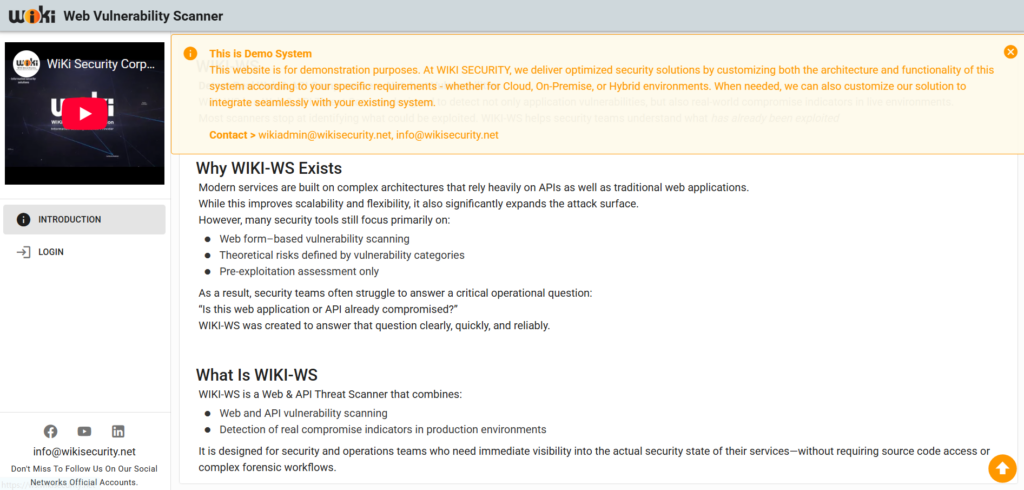대부분의 조직은 정기적으로 웹 어플리케이션의 보안 취약점 점검을 수행하는 정책을 운영하고 있습니다. 이런 정기적 보안 활동을 돕기 위해 개발되었습니다. 다른 웹 취약점 점검 도구와 차별화된 부분은, 웹 콘텐츠의 멀웨어 점검 기능, Cryptojacking 점검 기능 등이며, 지속적으로 기능을 추가하고 있습니다. 이 웹사이트는 사용자 계정을 생성하여 사용할 수 있으며, 대상 웹사이트가 본인 관리 하에 있다는 증명 절차를 통해 이용할 수 있습니다